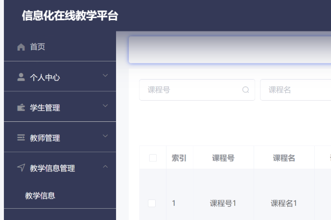 课程管理:课程基本信息(名称、学分、学时、性质:必修/选修)、课程大纲、授课教师关联。